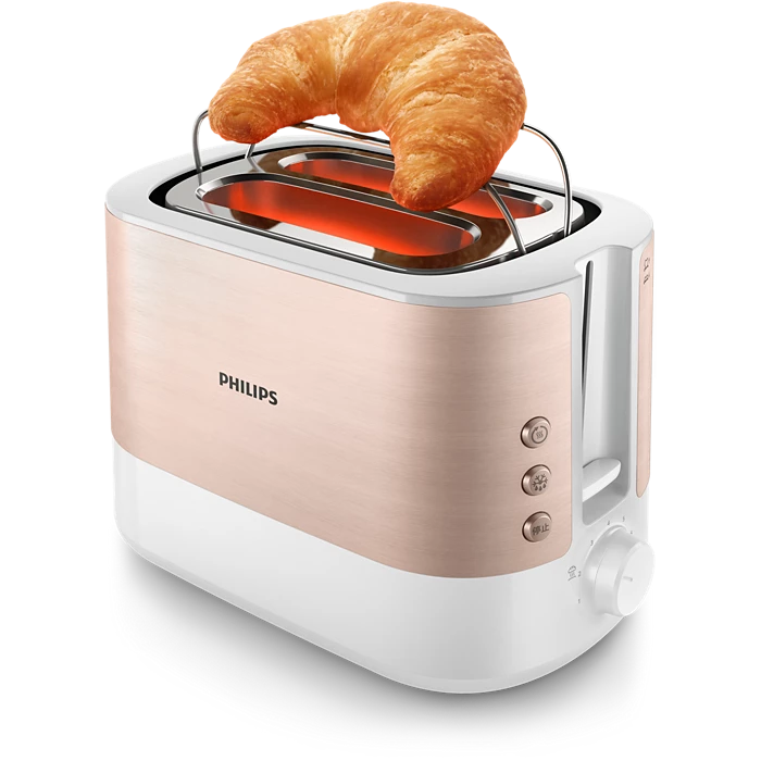 The self centering mechanism perfectly centers each slice for even browning, regardless of thickness.